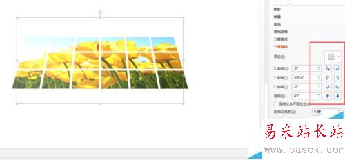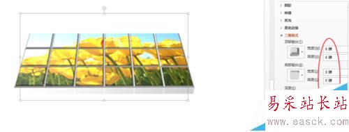 8、我們還可以做一些其他的變式,比如添加三維效果前把圖片的小方格子拉出如下效果再添加三維格式,試試吧!