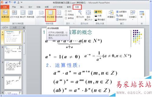 其實這個方法也很容易記,因為我們打印的是講義,所以應該找“講義母版”。