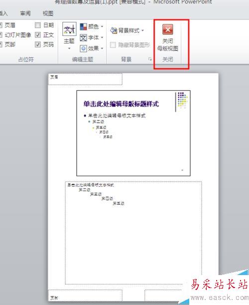 4、刪除后點擊“關閉母版視圖”。