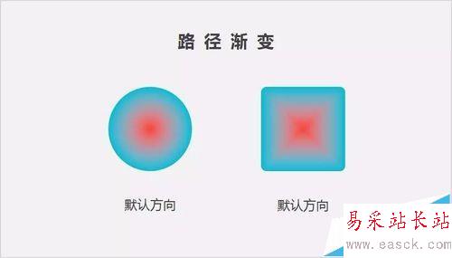 方法三:矩形漸變(5種漸變方式),第四種——路徑漸變(僅一種方式),第三、四種大家知道怎么使用就好,應用起來使用率并不高,效果如下圖;