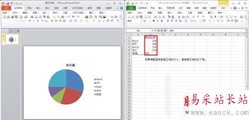 4、更改工作表中的數據,PowerPoint的圖表會自動更新。