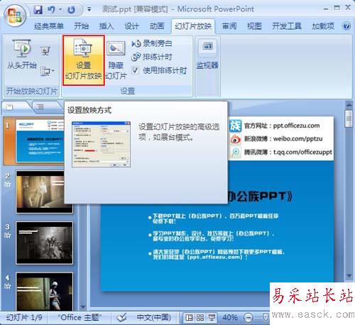 2、接著繼續(xù)點(diǎn)擊“設(shè)置幻燈片放映”。