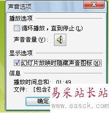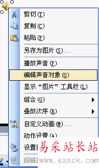 選擇“編輯聲音對象”,“聲音選項”中會有一個信息提示“包含在演示文稿中”。