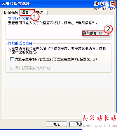在彈出的窗口中,切換到“語言”選項卡,單擊“詳細信息”按鈕。
