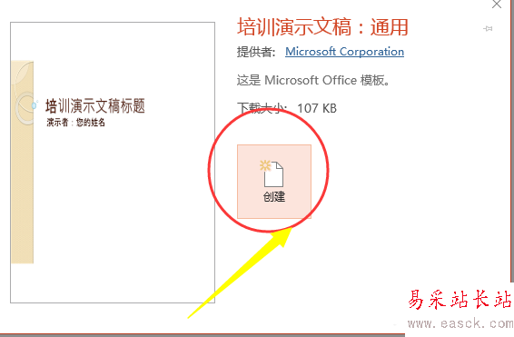 6、單擊之后會彈出一個 創建模板的提示,我們點擊創建就會下載當前的培訓模板了,下載完成之后默認程序會幫我們打開它。