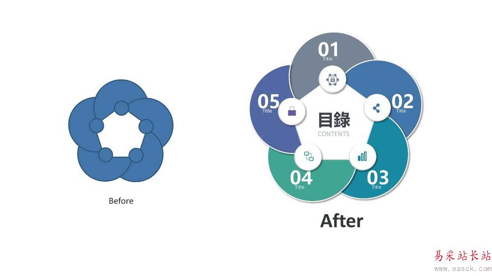 以上就是ppt中設計創意環形圖的教程,希望大家喜歡,請繼續關注錯新站長站。