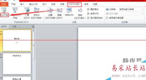 6、接下來需要觀看效果的話點(diǎn)擊“幻燈片放映”,然后點(diǎn)擊“從頭開始”即可看到。