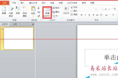 3、點(diǎn)擊紅方框可在本文檔里新建幻燈片
