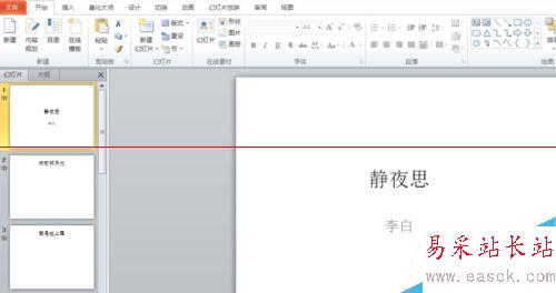 4、可在幻燈片里輸入內(nèi)容,這里僅以李白靜夜思詩詞為例
