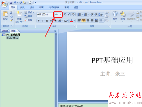 同第4步,為了保持協(xié)調(diào),再調(diào)整“主講:張三”字號(hào)為“40”。