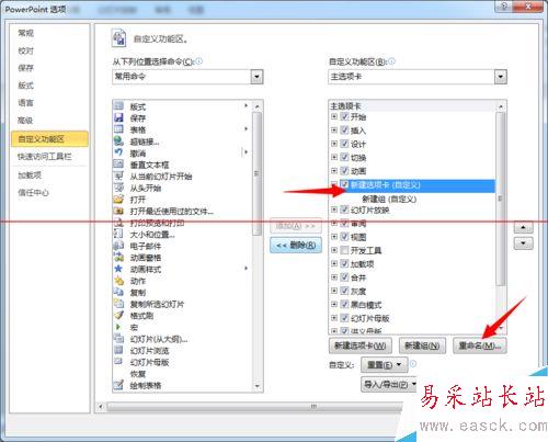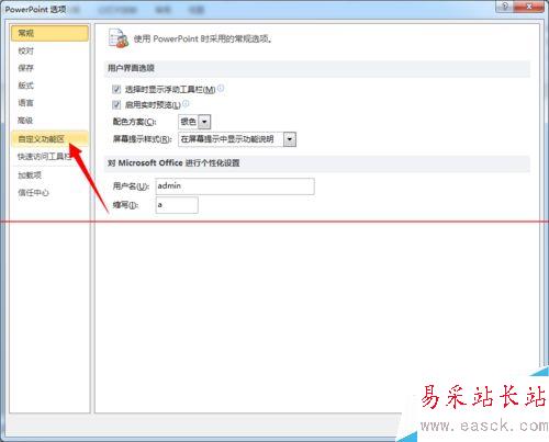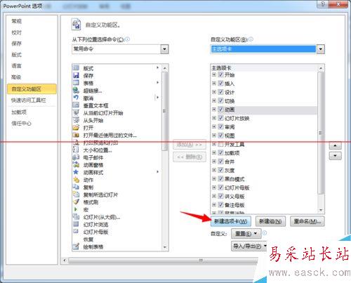 2、在彈出的窗口中選擇“自定義功能區(qū)”,然后再選擇“新建選項卡”。