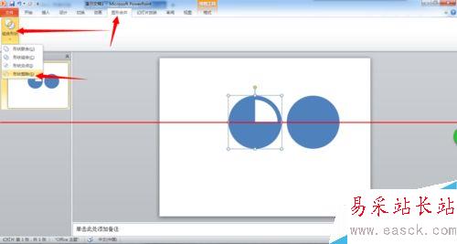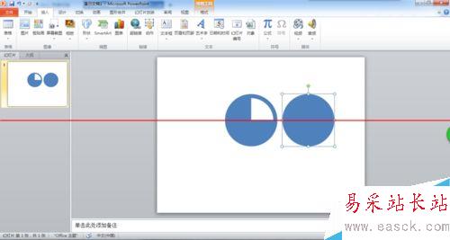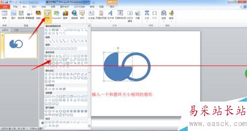 3、插入一個和圓環(huán)大小相同的扇形。PS.更具你的實際需求,你可以更改扇形缺口的大小