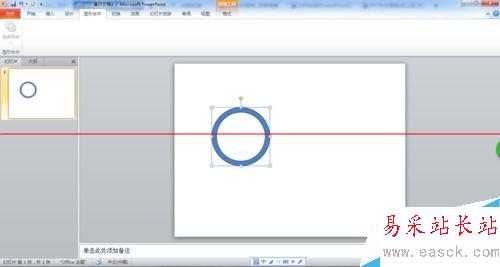 4、將兩個圖形重疊在一起,畫一個相同大小的圓形,然后再次使用“形狀減除”功能,將圓環(huán)剪出來。