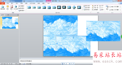 在新建的PPT中插入圖片,并且復(fù)制一張,做成如圖所示的鏡面對稱。