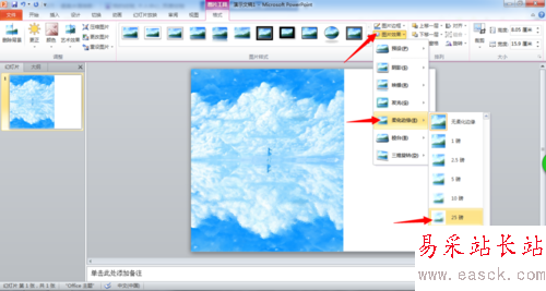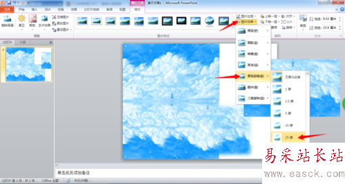 選中修改過的圖片,為其設(shè)置圖片效果“柔滑邊緣”→“25磅”