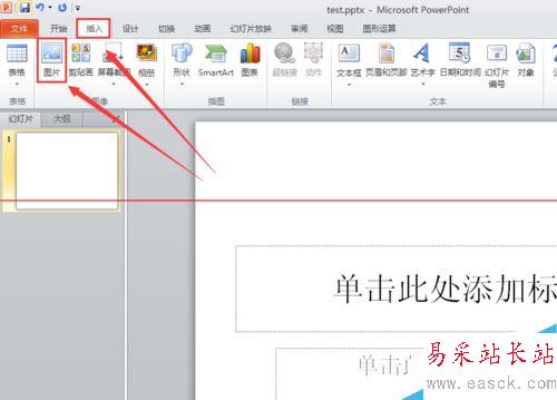 2、打開powerpoint2010,點擊菜單“插入” -- “圖片”,然后找到我們準備好的圖片,點擊“插入”。