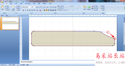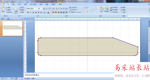 4、再次選擇“插入”,這次選擇“任意多邊形”。在我們截取一個角的矩形右上角畫一個如圖所示的多邊形。然后用第3步的方法,編輯多邊形的頂點(將在大多邊形內的點設置成“平滑頂點”),然后稍作修改,調到合適的位置。