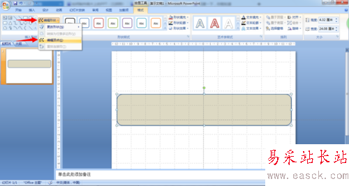2、雙擊剛剛畫好的“圓角矩形”,進入繪圖工具模式。依次選擇“編輯形狀”→