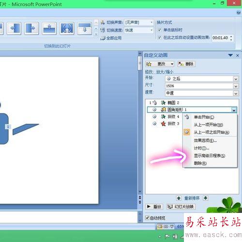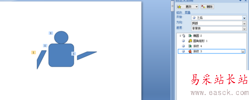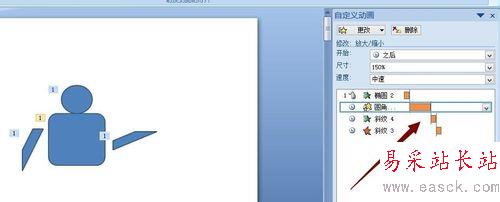 3、點擊一下“自定義動畫”后,右面就會出現(xiàn)一個窗口,添加了幾個動畫效果之后,就可以用動畫軸來調(diào)整動畫順序了。
