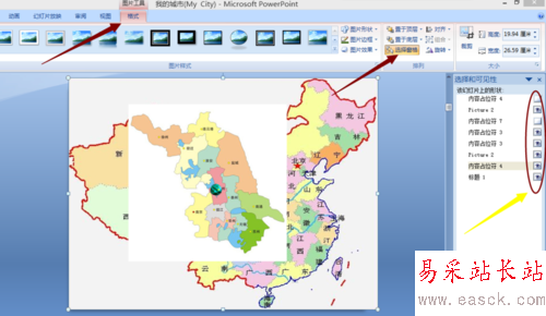 2、首先,打開PPT軟件,選中一個對象后,界面上方會出現(xiàn)”格式“一欄,點開”格式“,就可以發(fā)現(xiàn)”選擇格窗“一項。