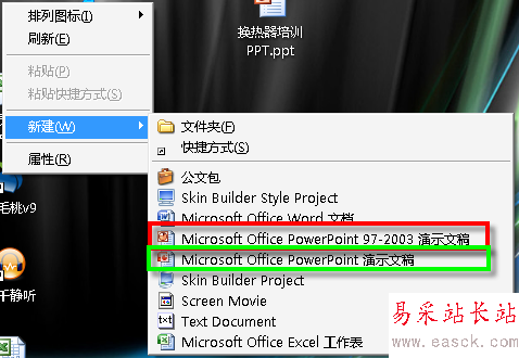 自從PowerPoint2007(以下簡稱PPT2007)以后創(chuàng)建的文檔擴展名就改為pptx了,但PPT2003以前的版本無法打開,為了兼容性考慮我們還會經(jīng)常創(chuàng)建ppt文檔,但系統(tǒng)默認的右鍵快捷菜單中的新建只有新建2007以后的PPT文檔,怎么辦呢?
