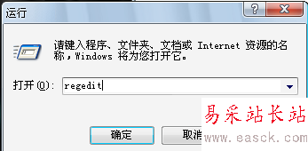 2、同時按下“Win”+“R”鍵,打開“運行”對話框輸入“Regedit”,打開注冊表編輯器。