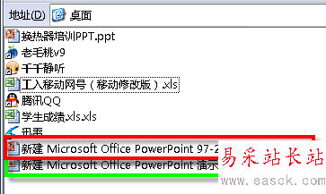 5、好了,關閉注冊表編輯器。重啟電腦看看,鼠標右鍵快捷菜單中是不是多了一項新建97-2003PowerPoint文檔。可以看到原來的新建PPT文檔還在,而且兩項創(chuàng)建的文檔還不一樣~