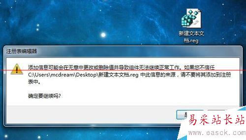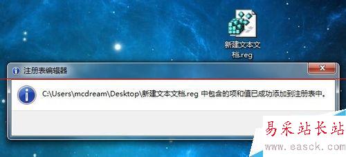 5、雙擊導(dǎo)入該注冊(cè)表文件,導(dǎo)入成功后會(huì)有提示信息,如圖所示: