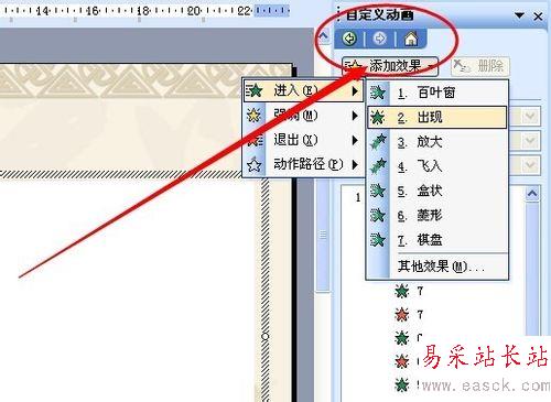 點擊“繪圖”工具欄的“繪圖”——“對齊或分布”——“水平居中”,設置為垂直居中,這樣做的目的就是顯得倒計時在原地數數。然后在“自定義動畫”任務窗格中調整顯示效果。