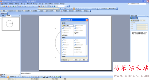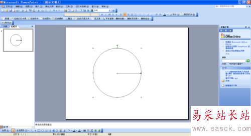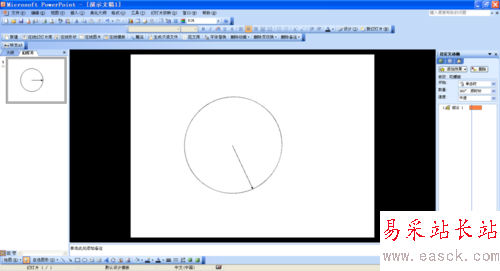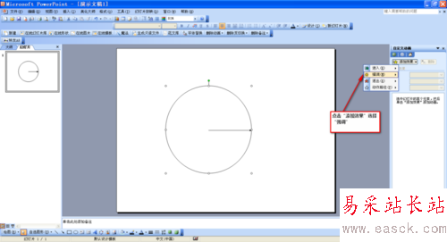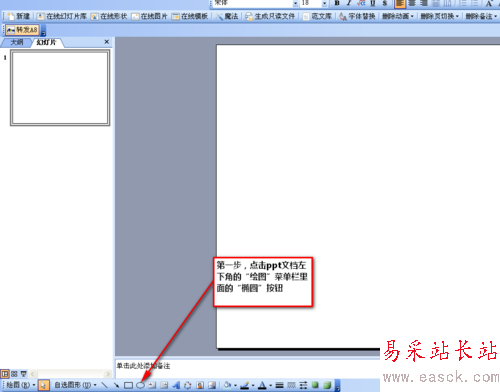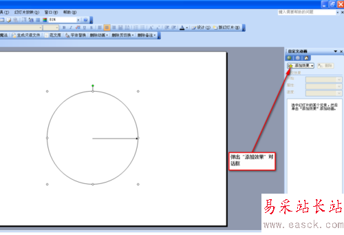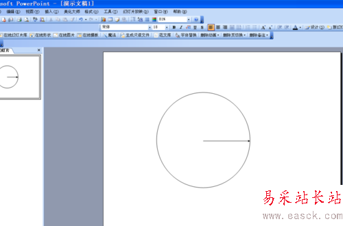 點擊“橢圓”,在ppt中畫一個圓和一條直線