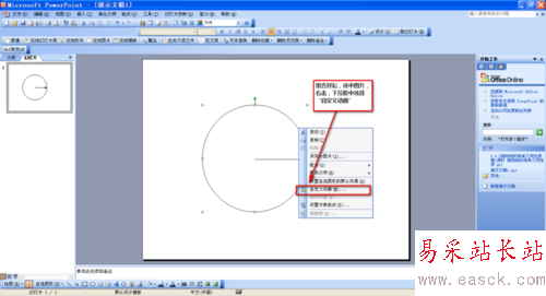 選中組合好的圖片,右擊下拉框中選擇“自定義動畫”