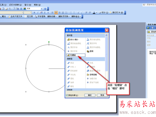 在對話框中選擇“添加效果”,再選擇“強調(diào)”