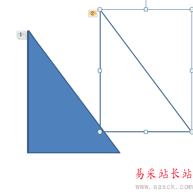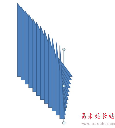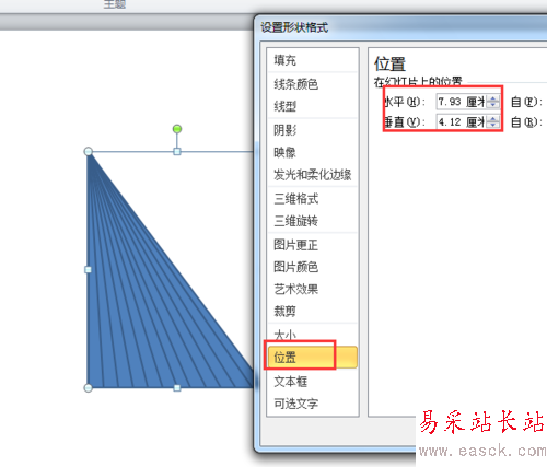 4、讓所有的三角形兩直角邊對齊,為了能達到精確對齊,可以通過“設置形狀格式”對話框設置精確的位置,使所有三角形直角邊和直角頂點對齊。圖所示: