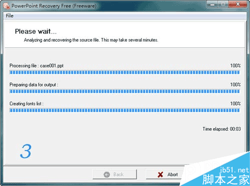 3、點選”next”,下一步,PPT恢復軟件開始修復PPT文檔。