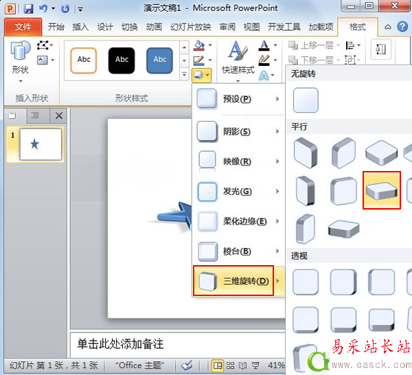 ④在三維旋轉中,選擇平行第二排中的第三個。