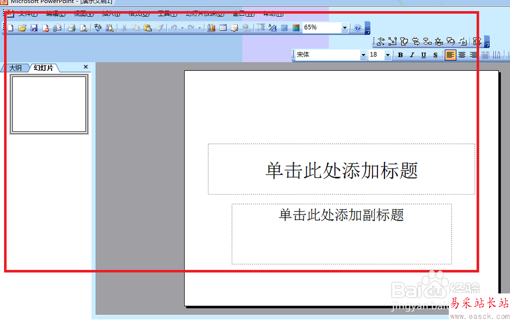 2、進(jìn)入Microsoft officePowerPoint2003的界面。如下圖