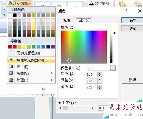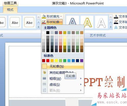 6、繪圖工具——格式——形狀輪廓——無輪廓。去除了線條。形狀填充選擇——其他填充顏色,選出的顏色如圖。