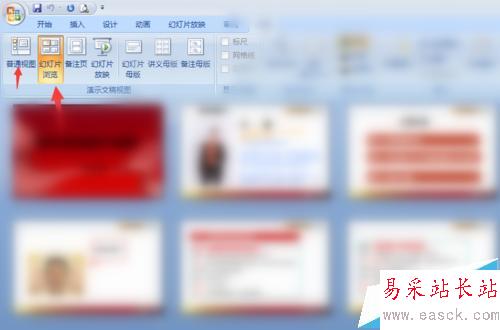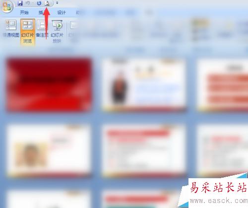 1、我們打開(kāi)PPT,看普通視圖只有一頁(yè)。點(diǎn)擊幻燈片瀏覽,可以看到多張的幻燈片,今天我們就把多張的幻燈片,一起打印在一張A4紙上,環(huán)保,節(jié)約資源。