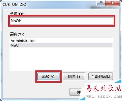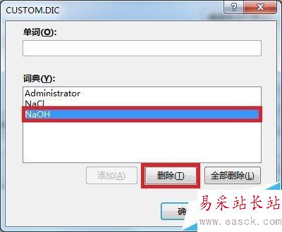 7、添加后再詞典列表中看到該詞,如果不需要了,還可以點擊刪除,最后確定即可。