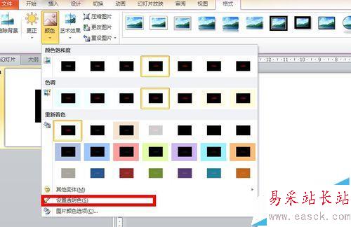 5、雙擊圖片,在工具欄中依次找到“顏色-設(shè)置透明色”