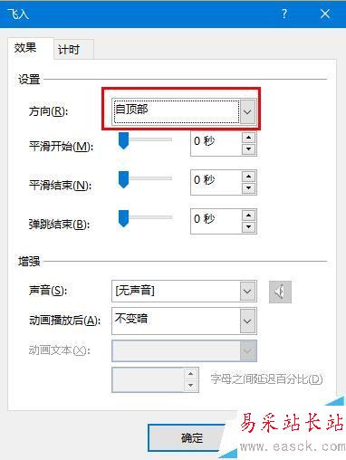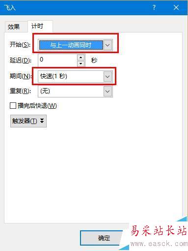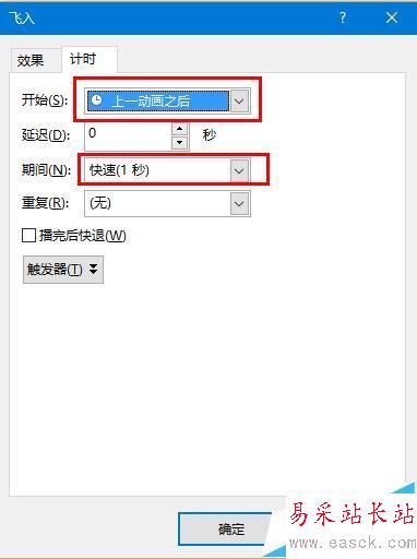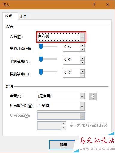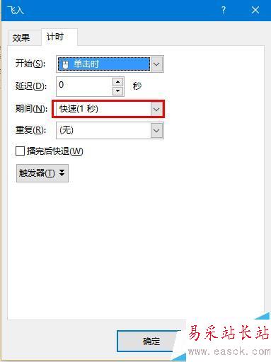 8、如圖將其設置為“自右側”和“快速1秒”