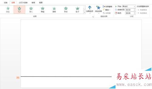 6、先用鼠標選擇這條線。設置這條線的動畫為“飛入”。并點開動畫窗格。