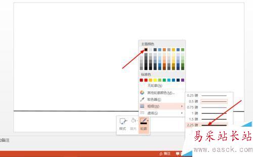 4、鼠標指著這條線,單擊鼠標右鍵。按圖編輯這條線,選擇黑色和2.25粗的線