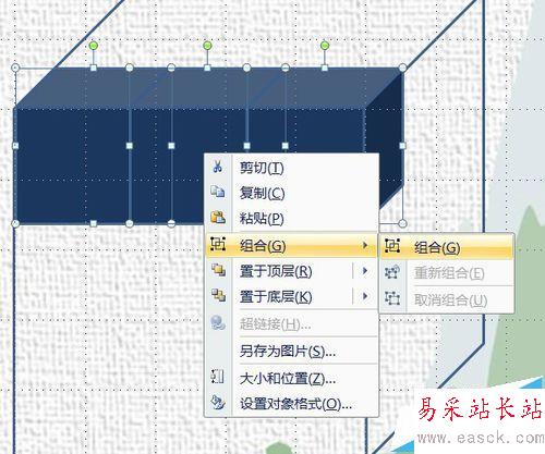 5、復制兩個。拉動選擇框?qū)⑷齻€全選,右鍵——組合。再復制,使小立方體成九個。組合是為了方便復制和擺放。