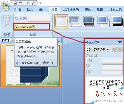 1、點擊動畫菜單,打開自定義動畫面板。