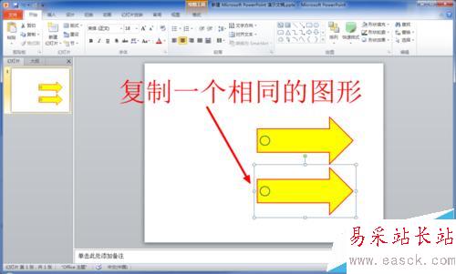 4、將設置好樣式的形狀復制一份,這樣幻燈片中就有兩個一樣的形狀。