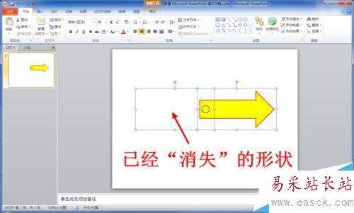 9、設置好后你就發現復制后的圖形從PPT中“消失”了,其實并沒有消失,只是變成透明的了。