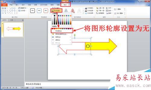 8、將復制的圖形的輪廓設置為“無”(選中后通過“格式”選項卡中的“形狀輪廓”選項設置)。