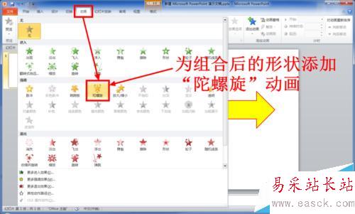 11、給組合后的圖形添加“陀螺旋動畫”。