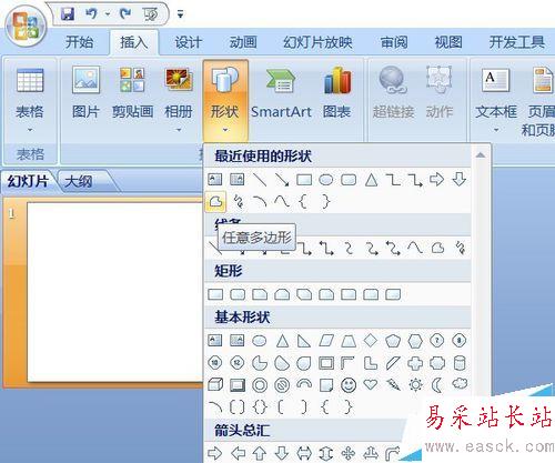 1、圖片基本由“任意多邊形”繪制。插入——形狀——任意多邊形。